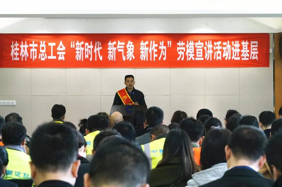恰逢全國(guó)上下學(xué)習(xí)貫徹習(xí)近平總書(shū)記同中華全國(guó)總工會(huì)新一屆領(lǐng)導(dǎo)班子成員重要講話精神、隆重慶祝改革開(kāi)放40周年和自治區(qū)成立60周年之際,11月22日上午,新城投資集團(tuán)工會(huì)委員會(huì)在新城商務(wù)酒店辦公樓十樓會(huì)議廳舉辦了“新時(shí)代,新氣象,新作為”勞模宣講活動(dòng)。市總工會(huì)黨組成員、財(cái)貿(mào)工會(huì)主席劉寶成等領(lǐng)導(dǎo)以及市總工會(huì)代表、新區(qū)管委黨群團(tuán)代表、市文投集團(tuán)代表、新城投資集團(tuán)代表及中建八局二公司廣西公司桂林基地項(xiàng)目代表參加了宣講會(huì),會(huì)議由新城投資集團(tuán)黨支部委員、工會(huì)主席譚力源主持。