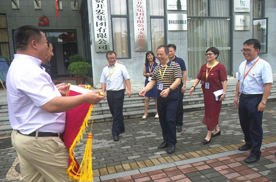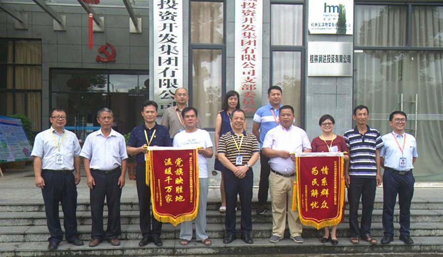 所謂綠水青山就是金山銀山,為村民們積極籌集資金清理和修復(fù)河堤,不僅保護(hù)了村里的青山綠水,同時(shí)也保護(hù)了村民的人身安全及財(cái)產(chǎn)安全。新城投資集團(tuán)黨支部在臨桂新區(qū)工委和臨桂區(qū)直屬機(jī)關(guān)工委的具體指導(dǎo)下,積極踐行黨的十九大精神,用實(shí)際行動(dòng)為群眾解決難題,辦實(shí)事,辦好事,得到了下頭陂村村民的一致認(rèn)可和稱贊。村委經(jīng)過集體商量,一致決定給新城投資集團(tuán)黨支部送上“黨旗映勝地,溫暖千萬家”的錦旗;給工會(huì)送上“情系群眾,為民解憂”的錦旗,表達(dá)了村民們對新城投資集團(tuán)給予的支持和幫助致以誠摯的謝意。