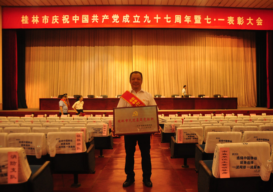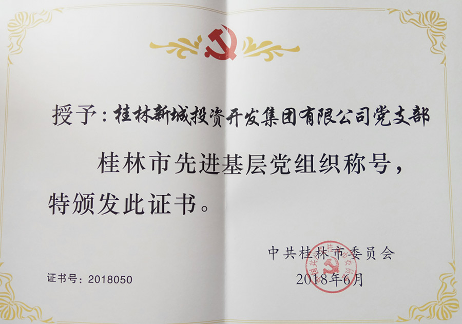 2018年6月29日上午,在桂林市直機關小禮堂舉行的桂林市慶祝中國共產(chǎn)黨成立九十七周年暨七·一表彰大會上,表揚了全市先進基層黨組織、優(yōu)秀共產(chǎn)黨員、優(yōu)秀黨務工作者,新城投資集團黨支部榮獲“桂林市先進基層黨組織”稱號,黨支部書記周道林代表新城投資集團黨支部參加了此次表彰大會。