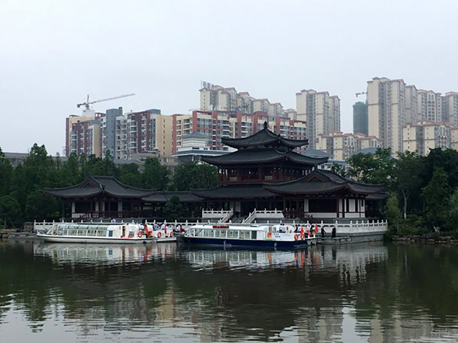 經(jīng)過太平橋、大觀樓等地方時,我們更是有幸與通航游船相會。游船在水中航行,水波漾開,亭臺浮動,恰似瓊樓玉宇、人間仙境。此情此景讓大家興奮不已,紛紛揮手吶喊,表達我們的激動之情,也彰顯了我們新城投資集團員工朝氣蓬勃的精神面貌。