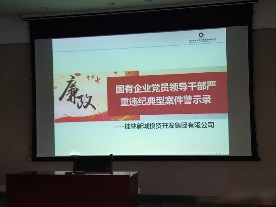 為充分發(fā)揮反面典型的警示教育作用,以案為鑒,提高黨員干部的自律意識,筑牢思想防線,增強(qiáng)拒腐防變能力。根據(jù)駐臨桂新區(qū)紀(jì)檢組的通知要求,5月8日上午,新城投資集團(tuán)黨支部在公司辦公樓1001會(huì)議室組織全體黨員、中層副職以上干部集體觀看《國有企業(yè)黨員領(lǐng)導(dǎo)干部嚴(yán)重違紀(jì)典型案件警示錄》。