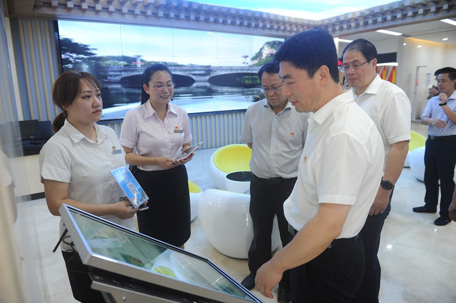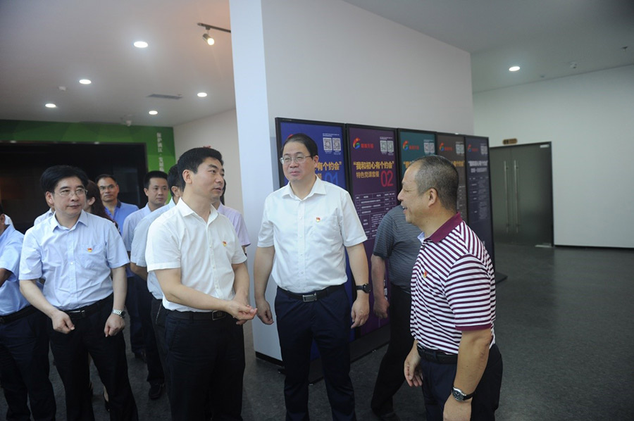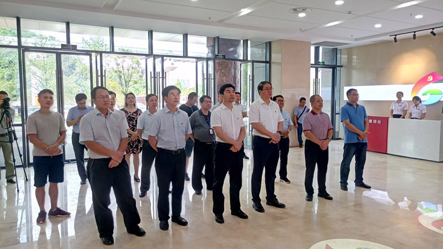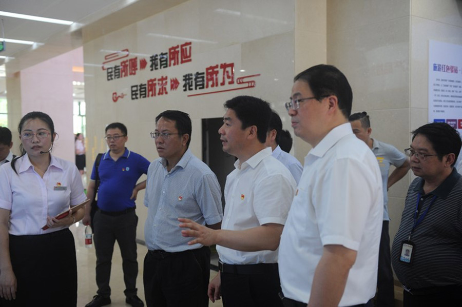 2019年7月1日,在中國共產(chǎn)黨建黨98周年到來之際,桂林市委副書記白松濤一行專程到桂林市黨群服務中心調研指導試運行情況。市委常委、組織部部長、市黨群服務中心建設工作領導小組組長彭東光陪同調研。