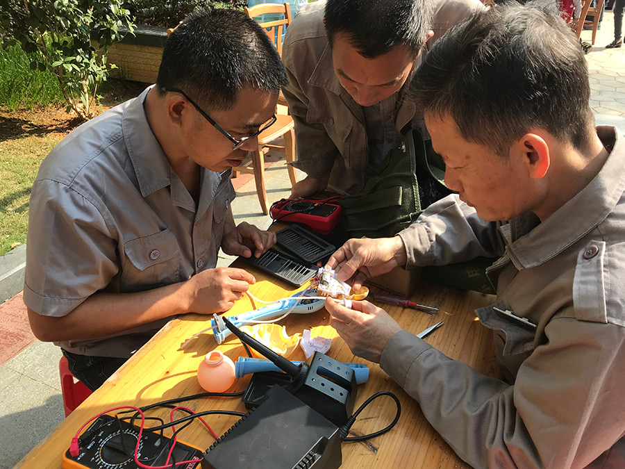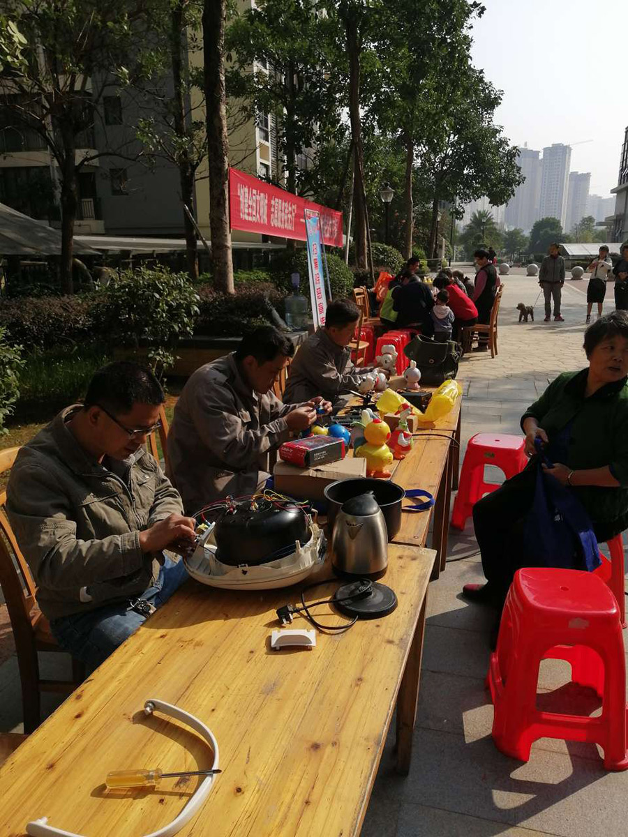 新城投資集團黨員志愿者們在現(xiàn)場開展“便民服務(wù)進社區(qū)”活動,對居民送來的家電進行故障診斷和免費維修,各種飲水機、豆?jié){機、電飯煲、電水壺等小家電在志愿者手中紛紛運轉(zhuǎn)起來,志愿者們認(rèn)真負(fù)責(zé)的態(tài)度和專業(yè)的維修技能獲得了居民們的一致好評。