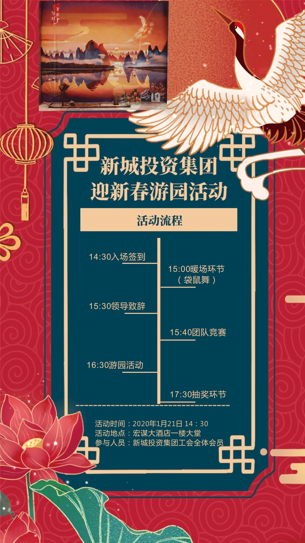 2020年1月21日下午,在集團黨支部的關心和大力支持下,由新城投資集團工會組織開展的“迎新春游園活動”在桂林宏謀大酒店一樓大堂熱烈舉行。集團黨支部書記、董事長、總經(jīng)理周道林率全體領導班子成員、支部委員參加活動,向廣大員工送上新年的祝福。廣大職工會員積極參與,營造歡樂、和諧的氣氛迎接新春佳節(jié)的到來。