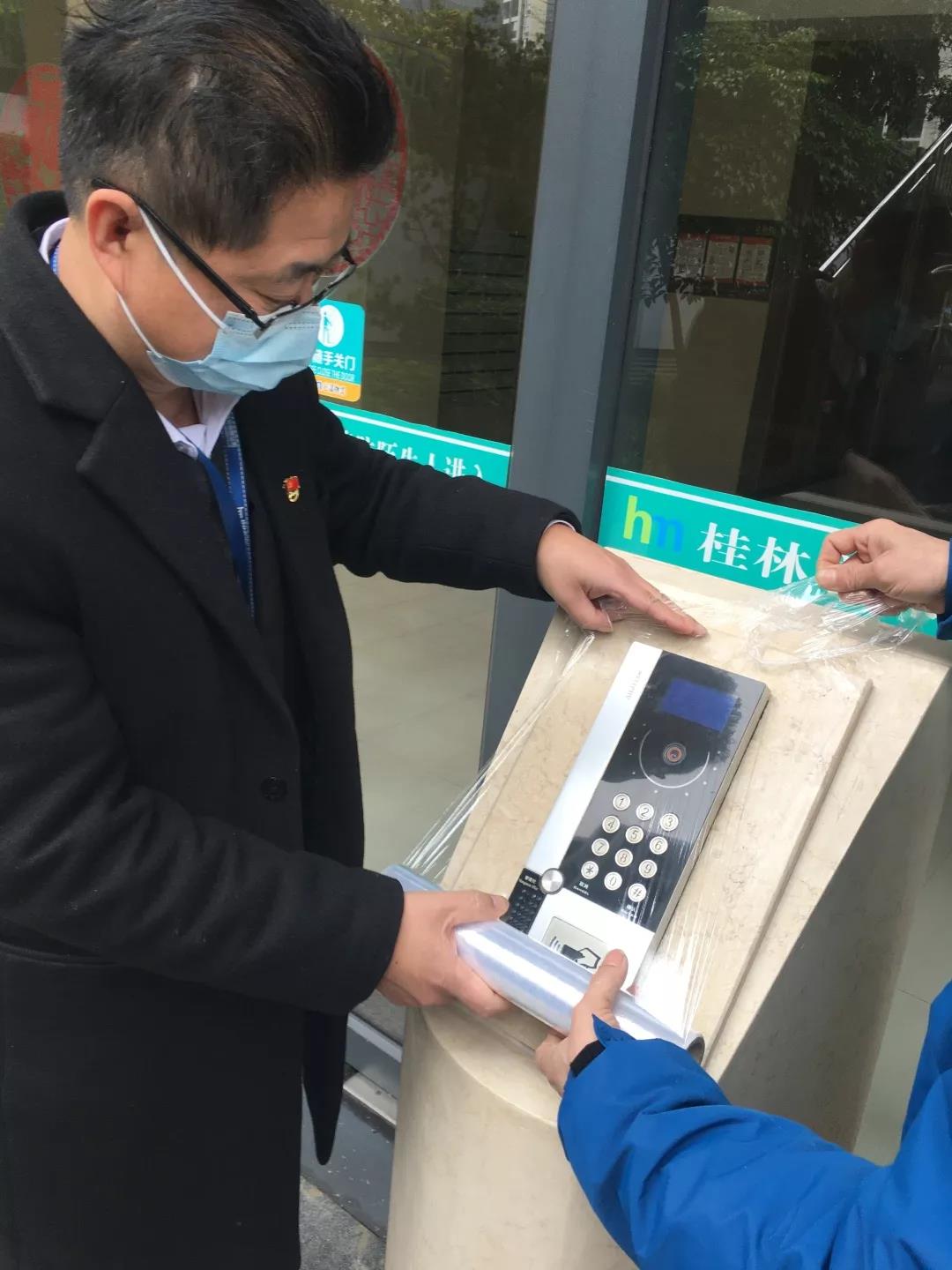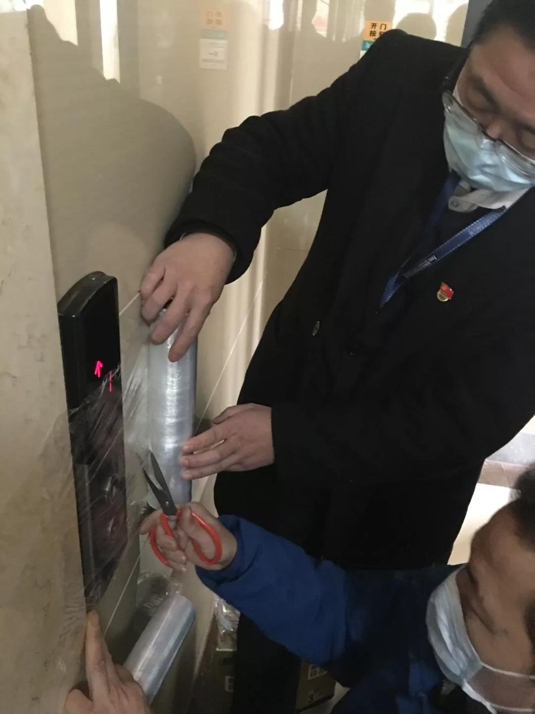 工程部在其部門負(fù)責(zé)人、共產(chǎn)黨員周成同志的帶領(lǐng)下,全員提前返崗。通過給小區(qū)所有入戶門對(duì)講系統(tǒng)及電梯內(nèi)按鍵穿上每天一換的保鮮膜“保護(hù)外套”、給每臺(tái)電梯內(nèi)裝上業(yè)主按鍵時(shí)使用的抽紙等方法,最大程度減少接觸病菌細(xì)菌的幾率,不留隱患,給業(yè)主創(chuàng)造一個(gè)健康、 安心的居家環(huán)境,為所有業(yè)主守住這道防疫防線。