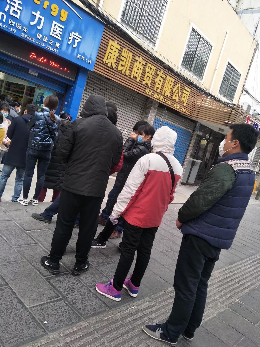 ▲冷冷的天氣,唐忠祥同志在各藥店和醫(yī)療器械機(jī)構(gòu)門口排隊(duì)采購物資。