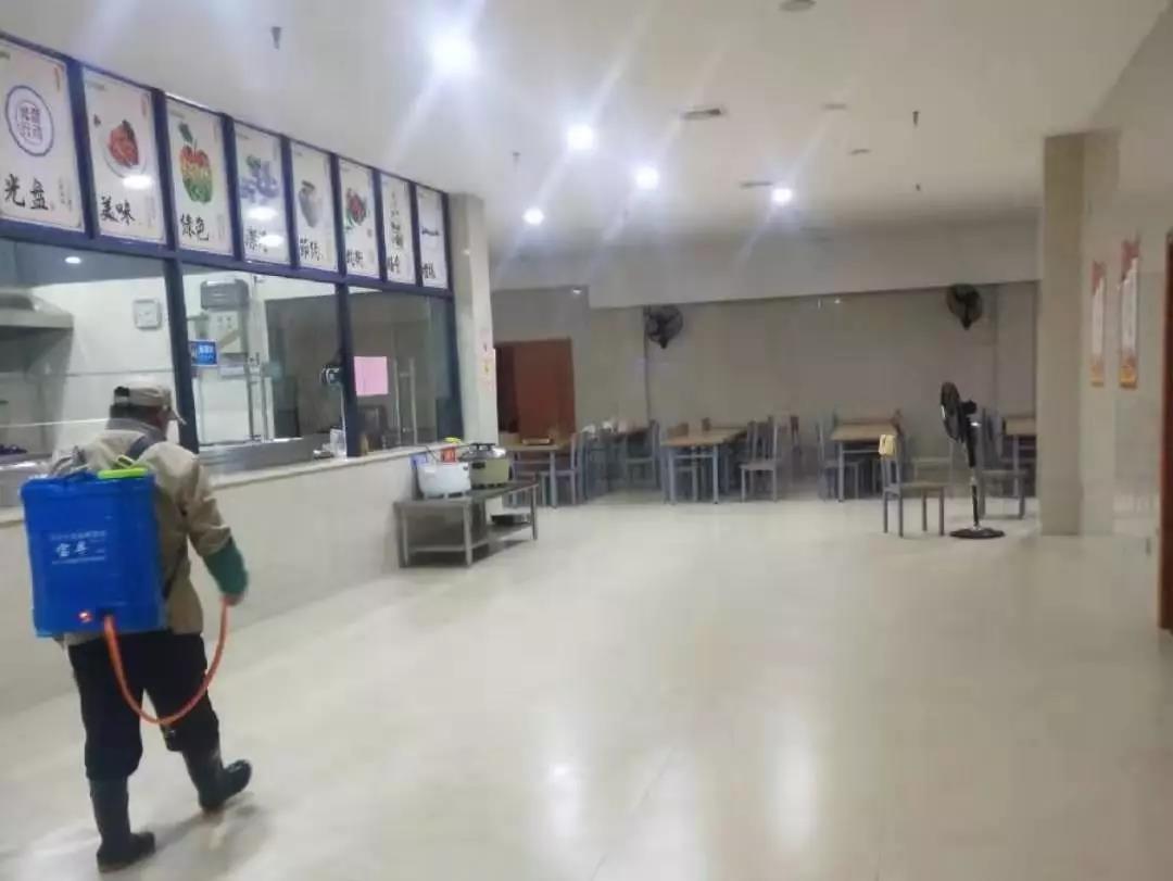 ▲保潔人員分別對(duì)物業(yè)中心、員工食堂、小區(qū)門崗、宏謀體育館等區(qū)位進(jìn)行全面消毒。