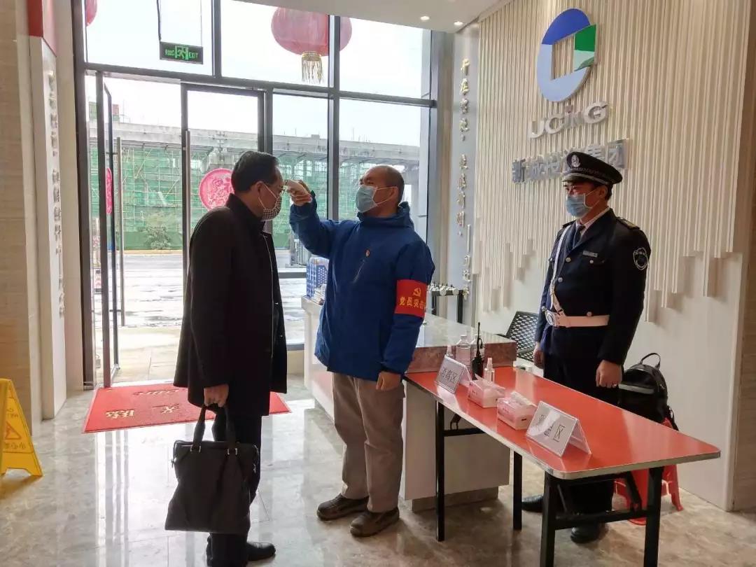 ▲疫情防控崗在為進(jìn)入辦公樓人員測(cè)體溫。