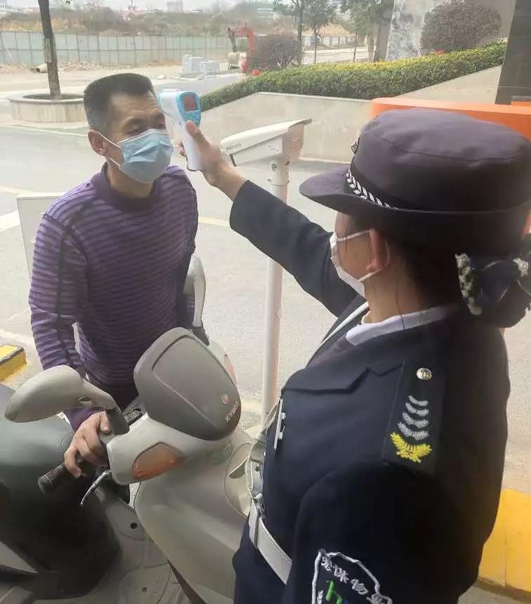 ▲疫情防控崗在為進(jìn)入小區(qū)人員測(cè)體溫。