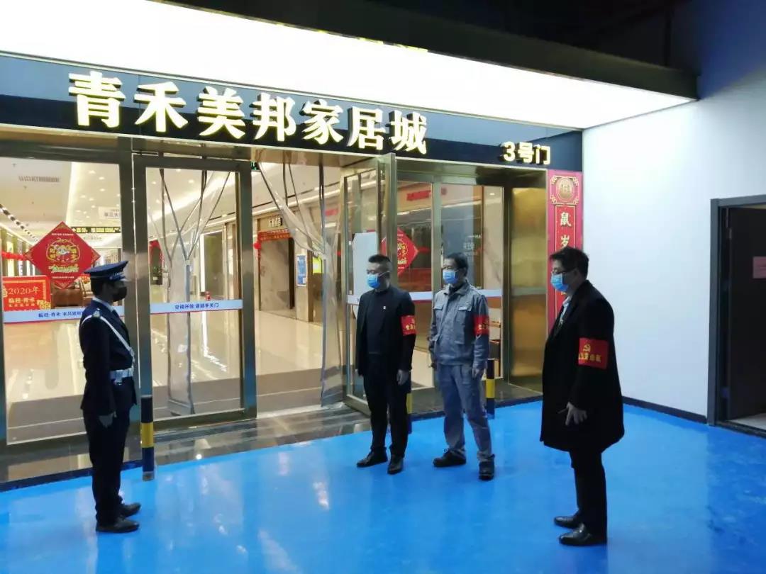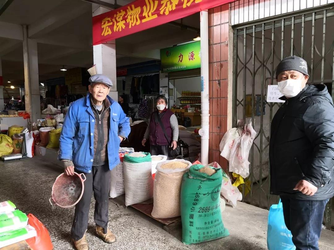 ▲橡膠公司項(xiàng)目工作人員與市場(chǎng)管理人員對(duì)市場(chǎng)及各門面進(jìn)行防疫工作排查,并提醒市民戴口罩出行。
