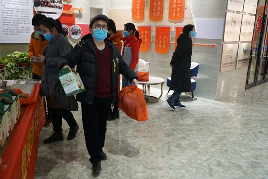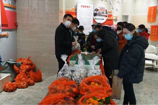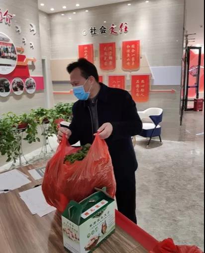 2月20日下午,來自六塘、中庸、宛田各鄉(xiāng)鎮(zhèn)的紅薯、大白菜、香菇、平菇、雞蛋等農(nóng)產(chǎn)品被送到達新城投資集團辦公樓一樓。