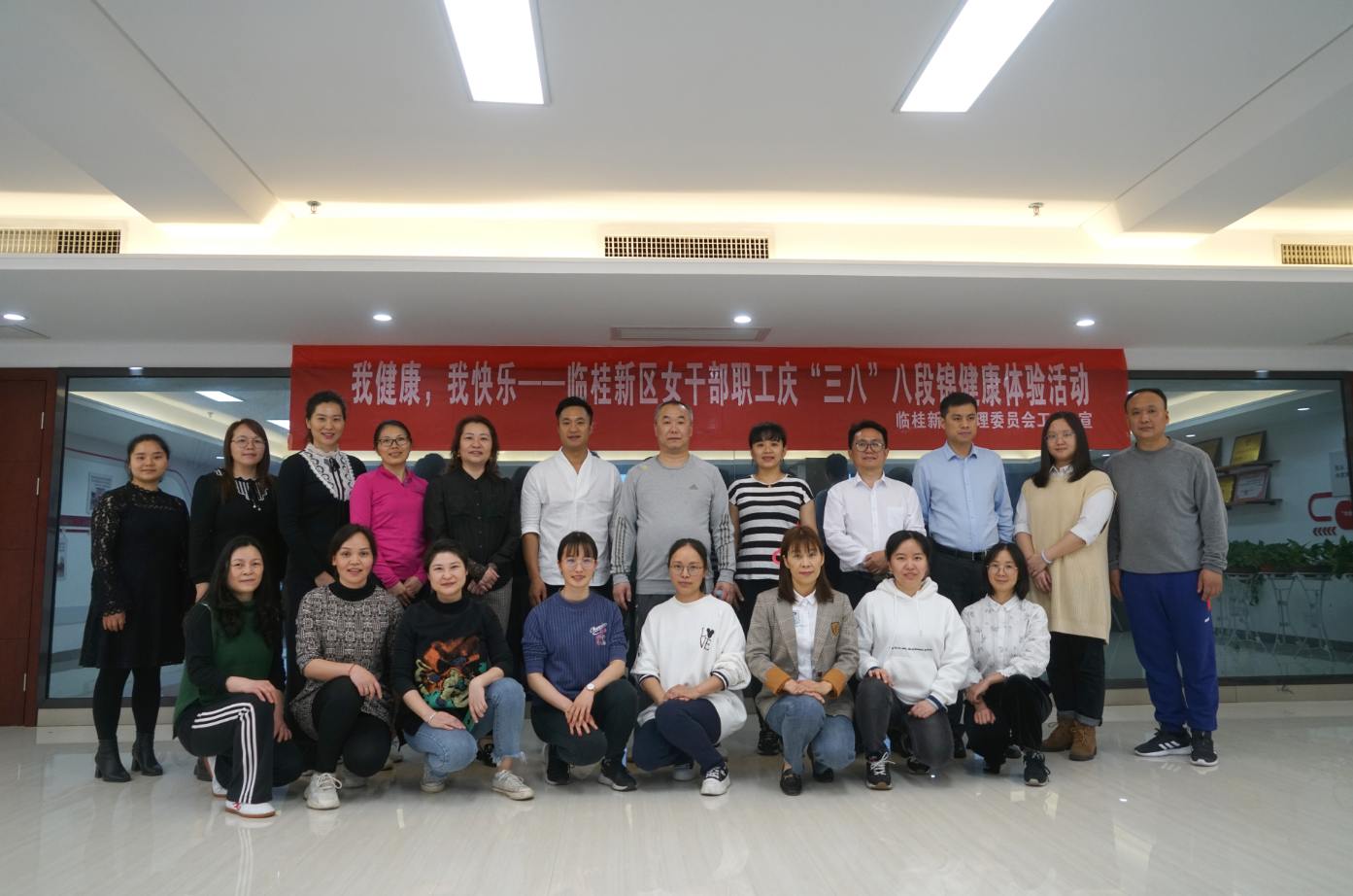 3月19日,在公司辦公大樓職工之家,工會(huì)組織職工積極報(bào)名參加了臨桂新區(qū)管委工會(huì)舉辦的“我健康,我快樂”八段錦健康體驗(yàn)活動(dòng)。在老師耐心地講解之下,大家領(lǐng)略到八段錦傳統(tǒng)文化精髓的獨(dú)特魅力。通過(guò)此次體驗(yàn)活動(dòng),職工們了解了“八段錦”的健身、養(yǎng)生功用,表示今后要增強(qiáng)健身意識(shí),工作之余抽出時(shí)間堅(jiān)持練習(xí),在健身中尋求快樂,在工作中收獲幸福。