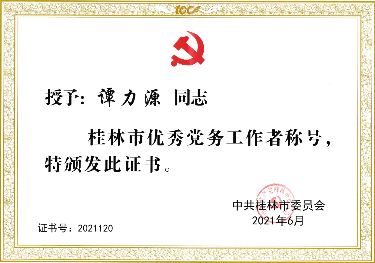 在慶祝中國共產(chǎn)黨成立100周年之際,為弘揚正氣、樹立標(biāo)桿,激勵各級黨組織和廣大共產(chǎn)黨員堅守初心、勇?lián)姑^發(fā)有為,市委決定對150名共產(chǎn)黨員、120名黨務(wù)工作者、150個先進(jìn)基層黨組織予以表彰,分別授予“桂林市優(yōu)秀共產(chǎn)黨員”、“桂林市優(yōu)秀黨務(wù)工作者”、“桂林市先進(jìn)基層黨組織”稱號。