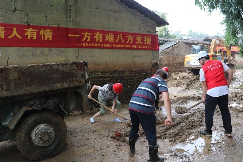 近期,臨桂新區(qū)鄉(xiāng)村振興聯(lián)系點(diǎn)五通鎮(zhèn)羅江村連續(xù)遭遇多輪強(qiáng)降雨侵襲,鄉(xiāng)村路面房屋受災(zāi)嚴(yán)重,村落存在大量積水和淤泥。面對(duì)災(zāi)情,臨桂新區(qū)黨工委委員、管委會(huì)常務(wù)副主任李星明,新區(qū)黨工委委員、管委會(huì)副主任、機(jī)關(guān)黨委書(shū)記蔣玖明了解情況后,急群眾所急、想群眾所想,立即把這項(xiàng)艱巨任務(wù)交給了新城投集團(tuán)黨總支,建議由會(huì)展中心項(xiàng)目部臨時(shí)聯(lián)合黨支部作為實(shí)施主體。新城投集團(tuán)黨總支副書(shū)記、總經(jīng)理黃峻按照部署立刻布置相關(guān)工作,安排集團(tuán)黨總支組織委員、工會(huì)主席、聯(lián)合黨支部副書(shū)記譚力源組織聯(lián)合黨支部成員單位——中建八局廣西公司桂林項(xiàng)目部具體緊急落實(shí),要求發(fā)揮央企技術(shù)優(yōu)勢(shì)和國(guó)企平臺(tái)資源,為鄉(xiāng)村災(zāi)后重建做好服務(wù)保障、力所能及的為村民解憂,以此提升“黨旗映勝地”黨建品牌的時(shí)代內(nèi)涵。