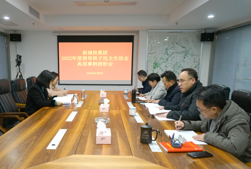 2023年2月8日,新城投集團(tuán)召開2022年度領(lǐng)導(dǎo)班子民主生活會(huì)典型事例剖析會(huì)。集團(tuán)黨總支副書記、總經(jīng)理黃峻主持會(huì)議并講話,集團(tuán)班子成員參加會(huì)議,黨總支委員列席會(huì)議。