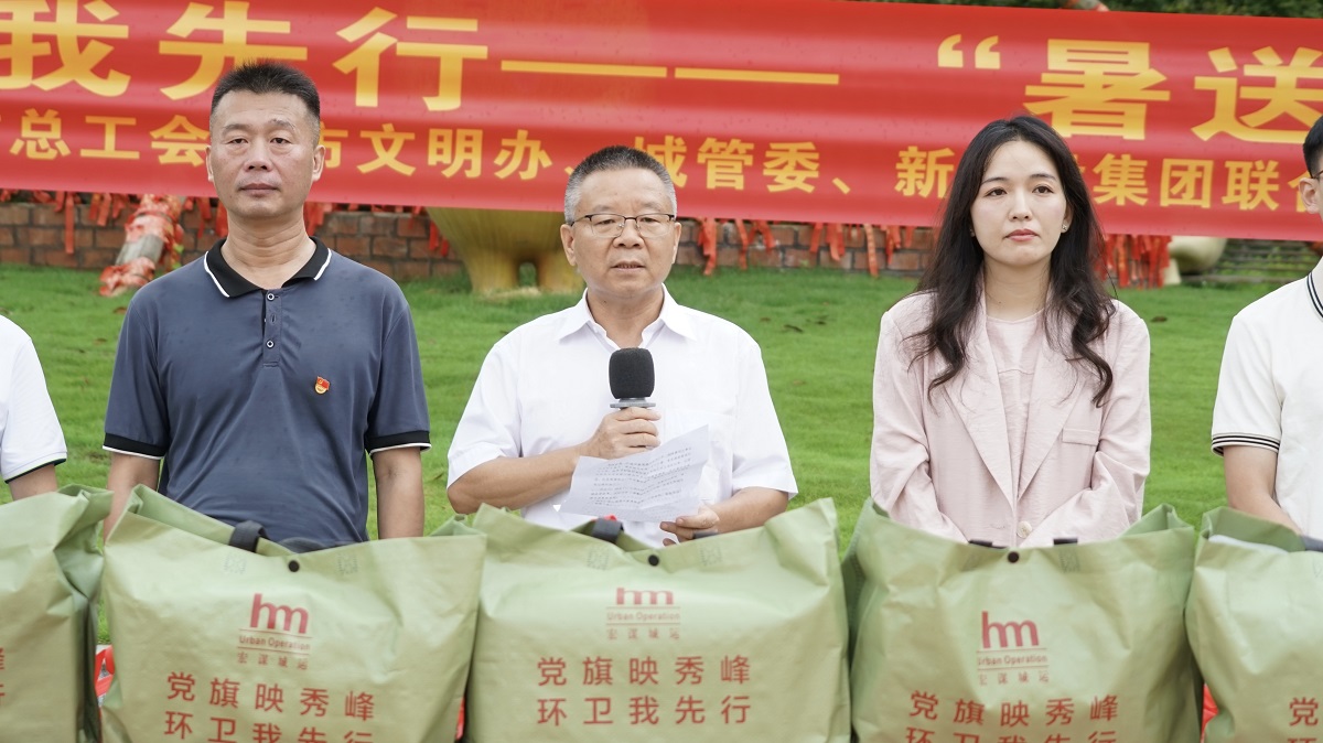 蘇紹坤在致辭中向奮戰(zhàn)在高溫一線的環(huán)衛(wèi)工人致以誠(chéng)摯問(wèn)候和崇高敬意。他指出,環(huán)衛(wèi)工人是文明守護(hù)者,城市建設(shè)每一點(diǎn)成績(jī)都離不開(kāi)他們的辛勤付出。秀峰區(qū)始終把環(huán)衛(wèi)事業(yè)放在城市治理的突出位置,新城投集團(tuán)下屬宏謀城運(yùn)公司承接項(xiàng)目后,以專(zhuān)業(yè)能力推動(dòng)工作提質(zhì)增效。今后,區(qū)政府將持續(xù)優(yōu)化防護(hù)措施、改善作業(yè)裝備,并帶動(dòng)全社會(huì)尊重環(huán)衛(wèi)勞動(dòng),使“垃圾不落地”成為市民自覺(jué)行動(dòng),共同讓秀峰更加潔凈。