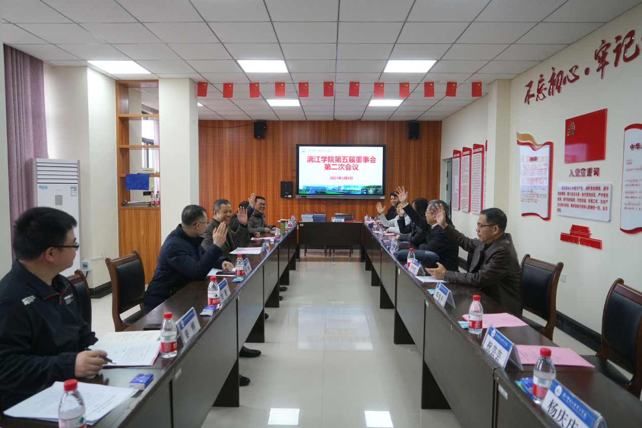 3月8日上午,漓江學(xué)院第五屆董事會第二次會議在漓江學(xué)院知善樓8312會議室順利召開。廣西師范大學(xué)黨委常委、副校長蘇桂發(fā)主持會議。桂林新城投資集團黨總支書記、董事長、總經(jīng)理周道林,副總經(jīng)理鄭善華,副總經(jīng)理吳濤,漓江學(xué)院黨委副書記、校長楊樹喆參加會議。集團黨總支組織委員、監(jiān)事會主席譚力源作為學(xué)校監(jiān)事會成員列席會議。