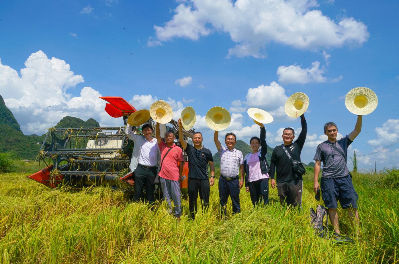 2021年9月5日上午,集團(tuán)公司黨總支書記、董事長周道林現(xiàn)場察看了解桂林市臨桂區(qū)南邊山鎮(zhèn)桂花園旱改水項(xiàng)目首次水稻收割。