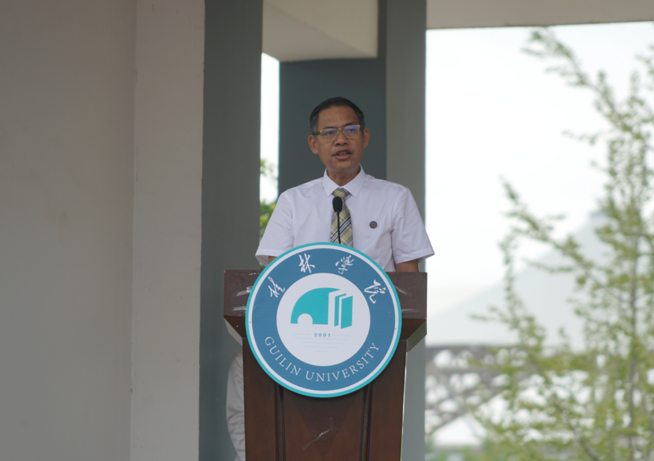 周道林表示,作為桂林學(xué)院的首屆新生,大家是學(xué)校新發(fā)展的見證者和參與者。為了給大家創(chuàng)造更好的學(xué)習(xí)環(huán)境,提供更好的發(fā)展平臺(tái),學(xué)校將認(rèn)真貫徹落實(shí)教育部致自治區(qū)人民政府《關(guān)于同意廣西師范大學(xué)漓江學(xué)院轉(zhuǎn)設(shè)為桂林學(xué)院的函》等文件精神,加大辦學(xué)投入,進(jìn)一步完善辦學(xué)條件,按照“做強(qiáng)新文科、壯大新工科、拓展新農(nóng)科和新醫(yī)科”的基本思路,實(shí)施“強(qiáng)基礎(chǔ)補(bǔ)短板、重內(nèi)涵提質(zhì)量、育特色樹品牌”戰(zhàn)略,堅(jiān)定“規(guī)范高效、特色鮮明、質(zhì)量與就業(yè)雙優(yōu)的國有民辦城市大學(xué)”發(fā)展目標(biāo),全面深化教育教學(xué)改革,不斷調(diào)整優(yōu)化學(xué)科專業(yè)結(jié)構(gòu),完善現(xiàn)代大學(xué)內(nèi)部治理體系,提高適應(yīng)區(qū)域經(jīng)濟(jì)社會(huì)發(fā)展所需要的應(yīng)用型、技術(shù)技能型人才培養(yǎng)質(zhì)量,加快建成桂林人民滿意的創(chuàng)新大學(xué)、開放大學(xué)、窗口大學(xué)。今年4月,習(xí)近平總書記在桂林考察調(diào)研時(shí),給桂林設(shè)定了打造世界級(jí)旅游城市的歷史使命。站在新的歷史起點(diǎn)上,希望大家要始終牢記總書記的囑托,主動(dòng)將自己的學(xué)習(xí)成長、個(gè)人發(fā)展與國家的發(fā)展需求緊密結(jié)合,為國家發(fā)展貢獻(xiàn)自己最大的力量。更多的關(guān)注桂林市的發(fā)展,用自己的所學(xué)所長來為桂林市的建設(shè)添磚加瓦。