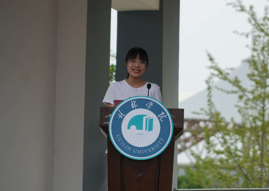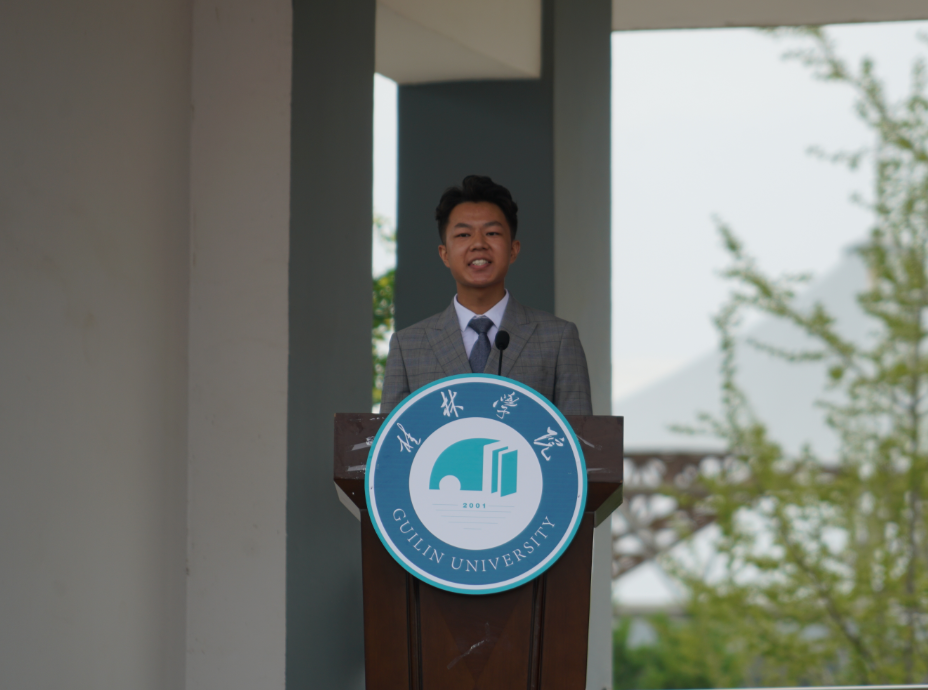 “云中的神啊,霧中的仙,神姿仙態(tài)桂林的山!情一樣深啊,夢(mèng)一樣美,如情似夢(mèng)漓江的水!水幾重啊,山幾重?水繞山環(huán)桂林城……”,周道林以中國當(dāng)代詩人賀敬之的《桂林山水歌》為開場(chǎng)白,向從五湖四海來到桂林學(xué)院的莘莘學(xué)子們表達(dá)最誠摯的問候與歡迎。