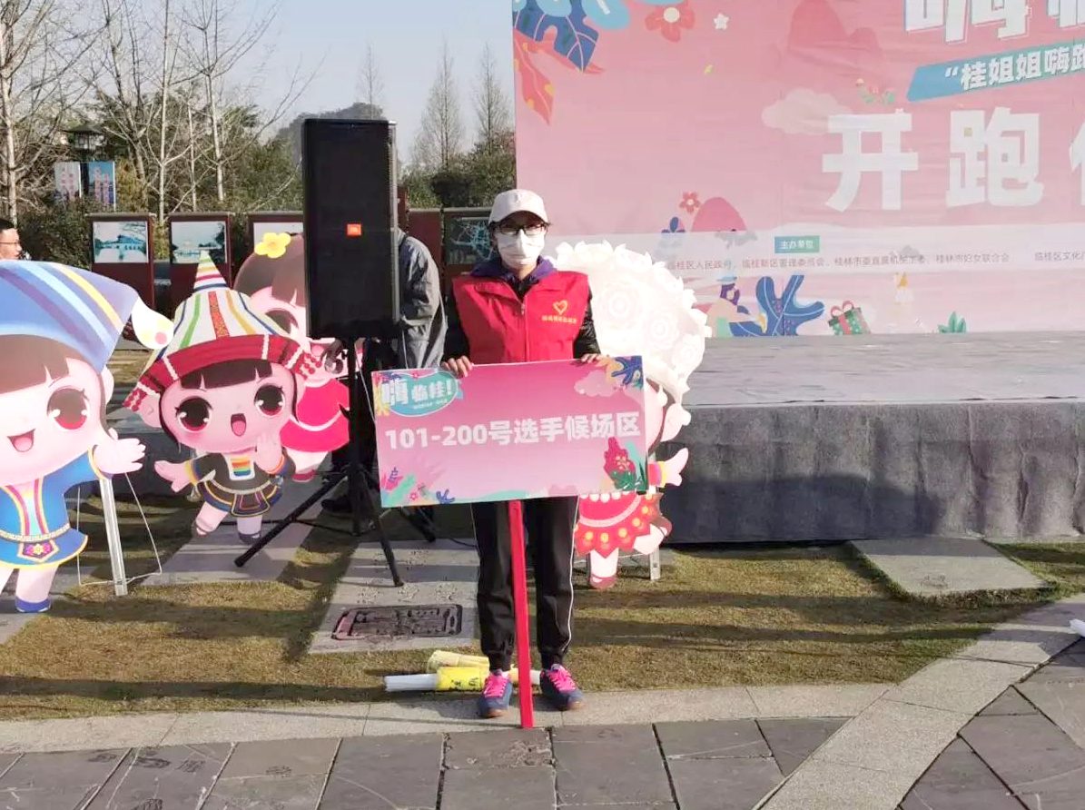積極分子、共青團(tuán)員參加“嗨?臨桂!”——“女神酷跑”活動志愿服務(wù)。