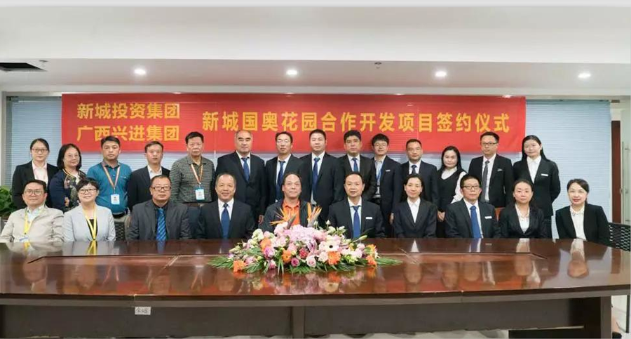 10月11日,桂林新城投資開發(fā)集團有限公司與廣西興進實業(yè)集團有限責任公司在新城投資集團15樓會議室舉行新城國奧花園合作開發(fā)項目簽約儀式。桂林市臨桂新區(qū)管委會副主任覃正東出席并見證簽約,桂林新城投資開發(fā)集團有限公司總裁周道林,廣西興進實業(yè)集團有限責任公司董事長羅欣分別代表雙方在合作協(xié)議書上簽字。