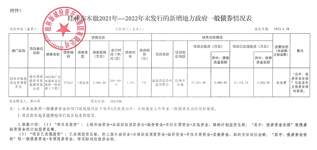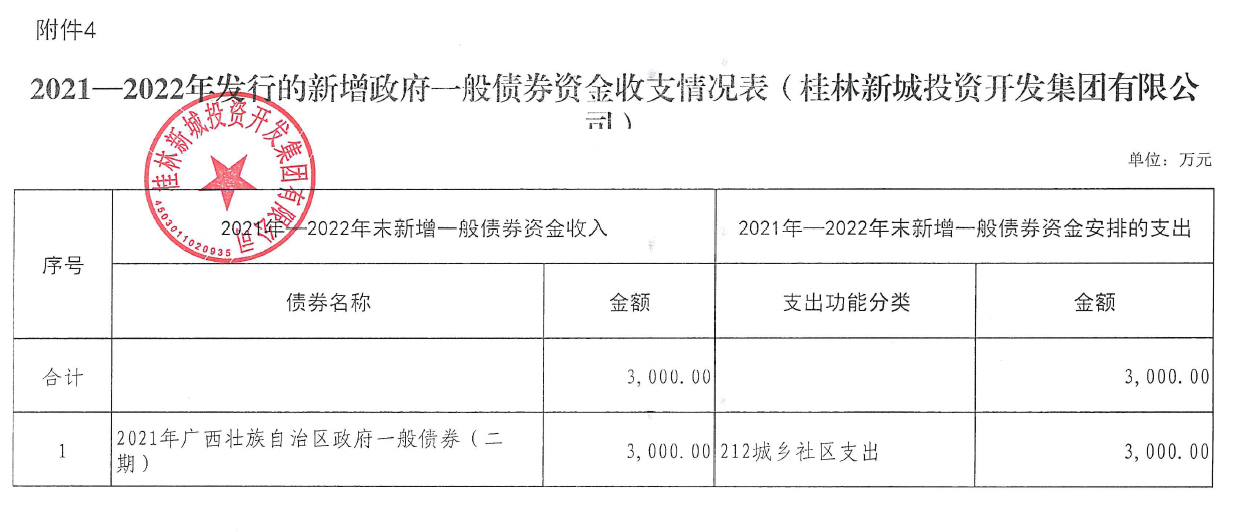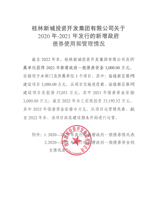桂林新城投資開發(fā)集團有限公司關于2020年-2021年發(fā)行的新增政府債券使用和管理情況