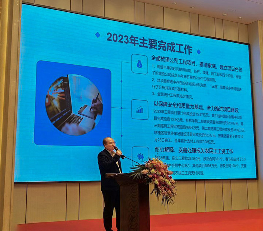 最后,朱毅在會上對公司一年來的發(fā)展進行了全面的總結(jié),從“活下去”、“站起來”、“走出去”三個方面描繪了2024年的發(fā)展思路,同時分析了面臨的嚴(yán)峻形勢,也對大家提出了希望和更高的要求,希望大家在城建集團的領(lǐng)導(dǎo)下,團結(jié)一心,共同努力,為公司的美好未來貢獻自己的力量和智慧!