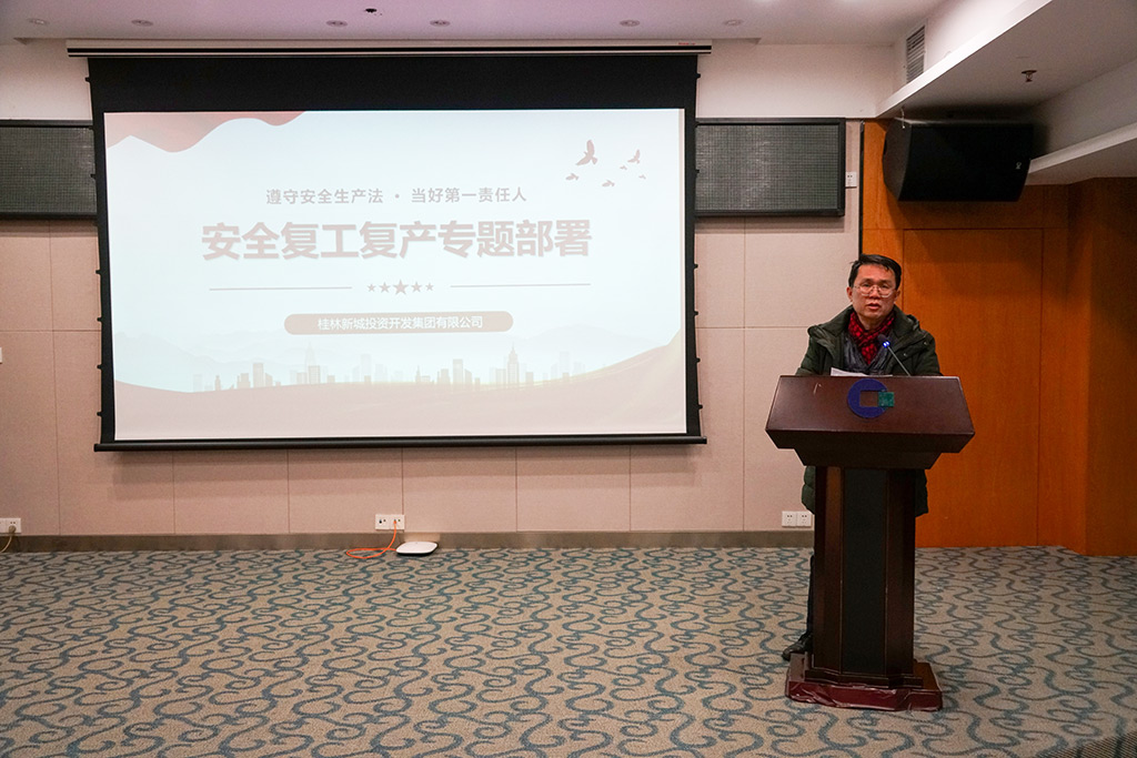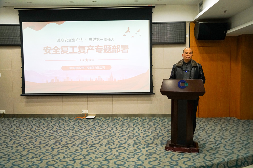 為深入貫徹落實(shí)桂林市國(guó)資委及城建集團(tuán)關(guān)于節(jié)后復(fù)工復(fù)產(chǎn)的工作要求,進(jìn)一步做好春節(jié)后企業(yè)安全復(fù)工復(fù)產(chǎn)工作,確保全國(guó)“兩會(huì)”前后全區(qū)安全穩(wěn)定。2024年3月4日,新城投集團(tuán)召開2024年春節(jié)后安全復(fù)工復(fù)產(chǎn)工作專題部署會(huì)暨全體員工節(jié)后復(fù)工復(fù)產(chǎn)動(dòng)員大會(huì),會(huì)議針對(duì)近期全國(guó)消防火災(zāi)事故頻發(fā)現(xiàn)狀進(jìn)行了警示宣傳教育,同時(shí)傳達(dá)上級(jí)安全復(fù)工復(fù)產(chǎn)、火災(zāi)防控等相關(guān)文件精神。受公司黨委副書記(主持工作)、副董事長(zhǎng)、總經(jīng)理朱毅委托,黨委副書記兼紀(jì)委書記、監(jiān)事會(huì)主席、工會(huì)主席譚力源出席會(huì)議并講話,會(huì)議由公司黨委委員、董事、副總經(jīng)理葉青旺主持。