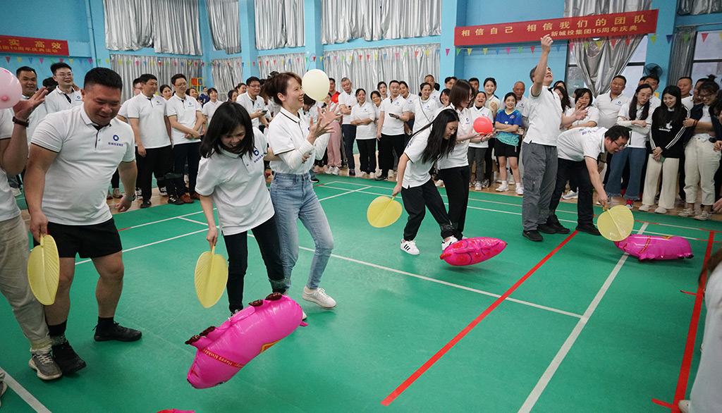 在目睹了兩場賽事的視覺盛宴后,職工們都躍躍欲試,迫不及待地參加集體團建活動?!皟扇巳憬恿s豬”游戲考驗隊員們的協(xié)調(diào)性、敏捷性和團隊合作意識,集團領(lǐng)導(dǎo)班子成員何萌與同伴一道齊心協(xié)力,順利完成比賽;“聽口令做動作”游戲考驗的是專注力、反應(yīng)力和身體協(xié)調(diào)性,集團領(lǐng)導(dǎo)班子成員劉敏在這個環(huán)節(jié)展現(xiàn)了一定的實力;“瞎子摸魚”游戲側(cè)重考驗職工的觀察力、反應(yīng)力和團隊合作能力,對體能也有一定的要求,跑得慢的“魚”,將迎強壯“瞎子”的當頭一棒,與生俱來的逃生欲讓游戲變得緊張刺激而又滑稽。輕松愉悅的活動氛圍讓大家沉浸其中,現(xiàn)場充滿了歡聲笑語,洋溢著喜慶的氣氛。