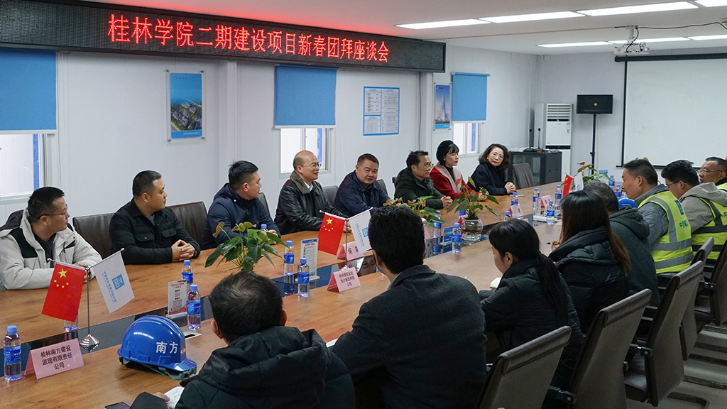 走訪結(jié)束后,在新城投集團(tuán)領(lǐng)導(dǎo)班子的陪同下,陶毅一行來到桂林學(xué)院二期建設(shè)項目,向全體參建人員致以新春的誠摯祝福,并與各方參建單位開展新春團(tuán)拜座談會。