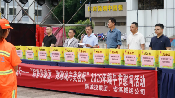 為深入踐行習(xí)近平總書(shū)記“以人民為中心”“勞動(dòng)最光榮”的指導(dǎo)思想,切實(shí)把組織關(guān)懷送到基層勞動(dòng)者心坎上,進(jìn)一步提升環(huán)衛(wèi)職工隊(duì)伍的職業(yè)認(rèn)同感和幸福感,2025年5月29日端午節(jié)前夕,新城投集團(tuán)聯(lián)合宏謀城運(yùn)公司在秀峰區(qū)中心廣場(chǎng)舉辦“粽香傳暖意,致敬城市美容師”端午節(jié)慰問(wèn)活動(dòng)。此次活動(dòng)得到市城管委,秀峰區(qū)政府、城管局、環(huán)衛(wèi)站的大力支持與指導(dǎo)。市城管委黨組成員、副主任蔣毅出席活動(dòng)。受新城投集團(tuán)黨委書(shū)記、董事長(zhǎng)朱毅委托,黨委副書(shū)記、紀(jì)委書(shū)記、工會(huì)主席譚力源代表集團(tuán)黨委、領(lǐng)導(dǎo)班子及全體職工,向奮戰(zhàn)在環(huán)衛(wèi)一線的干部職工致以節(jié)日問(wèn)候。