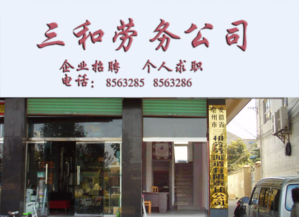 亳州市三和人力資源服務(wù)有限公司是經(jīng)人力資源和社會保障局許可,工商局注冊登記和有關(guān)行政部門認(rèn)可,具有獨立法人資格的專業(yè)化人力資源機構(gòu)。公司成立于2007年,注冊資金1200萬,主要為各類企業(yè)提供勞務(wù)派遣、勞務(wù)代理等勞務(wù)方面的事宜。